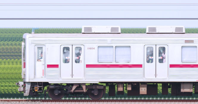 補助電源がSIVに置換されて活躍する東武10000系11604F編成海側の長編成サイドビューです。