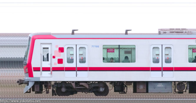 東武スカイツリーラインと東京メトロ日比谷線を直通運転する、東武70000系71705F編成山側の長編成サイドビューです。
