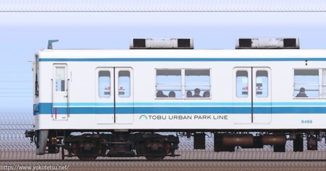 東武野田線で活躍する東武鉄道8000系8166F編成海側の長編成サイドビューです。