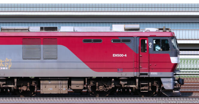EH500形の中でも数少ない2次形であるEH500-4(公式側)が牽引するコンテナ列車の長編成サイドビューです。