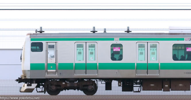 小江戸川越と臨海副都心や神奈川のベッドタウンを結ぶ路線で活躍する川越車両センターE233系ハエ101編成山側の長編成サイドビューです。