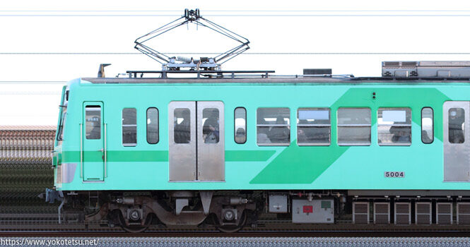西武鉄道から譲受されて運用につく、流鉄5000形5004F編成「若葉」の長編成サイドビューです。
