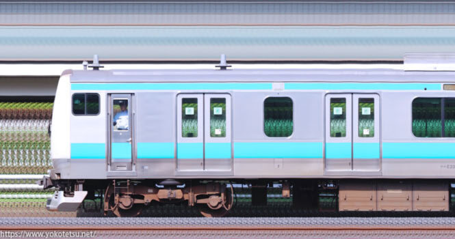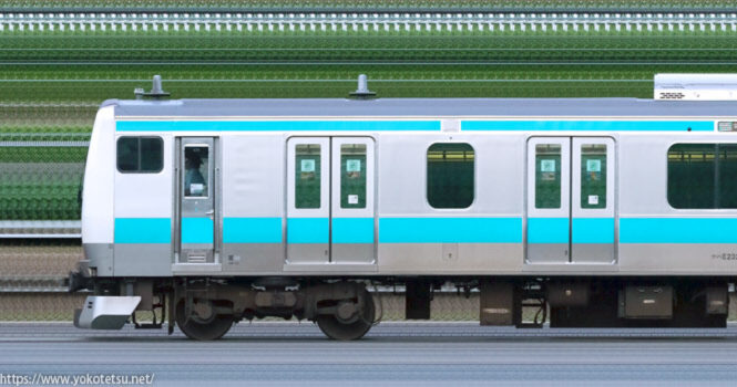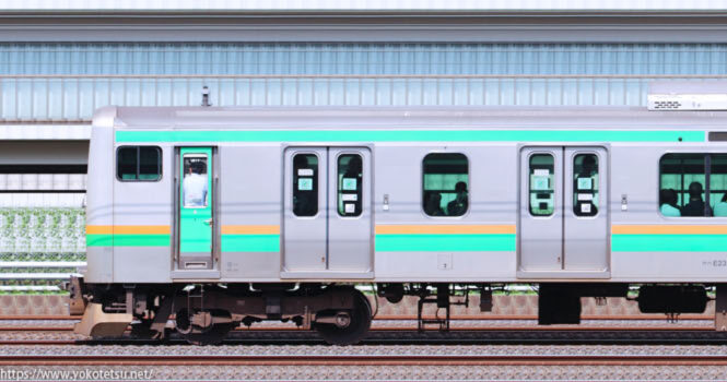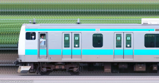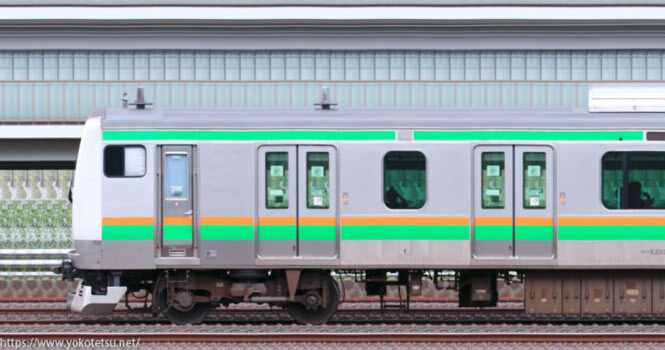 老朽化した211系の置き換えに増備された、小山車両センターE233系U222編成+U631編成山側の長編成サイドビューです。