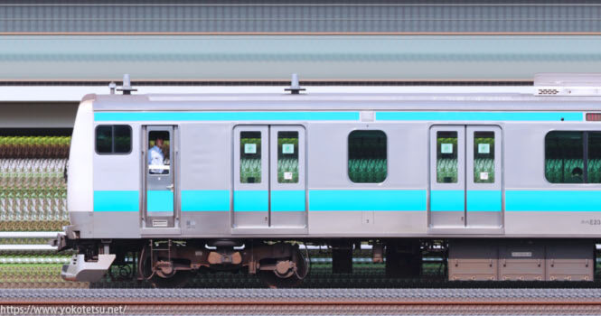 京浜東北線の主力車両である、さいたま車両センターE233系S163編成(サイ163編成)山側の長編成サイドビューです。