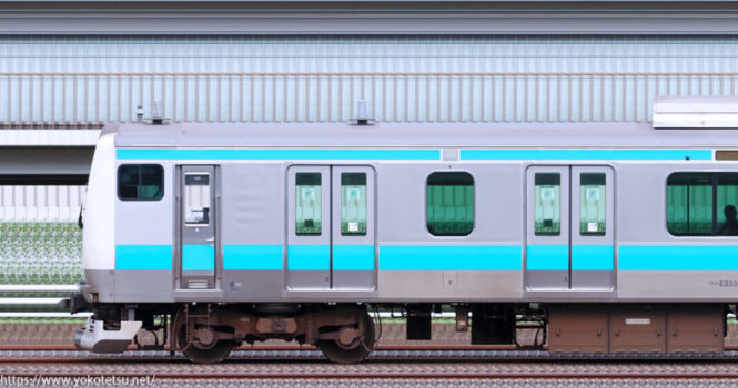 京浜東北線の主力車両である、さいたま車両センターE233系S149編成(サイ149編成)山側の長編成サイドビューです。