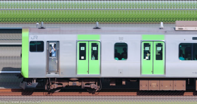 山手線の主力車両である、東京総合車両センターE235系11編成山側の長編成サイドビューです。