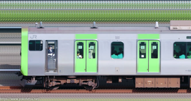 山手線の主力車両である、東京総合車両センターE235系24編成山側の長編成サイドビューです。