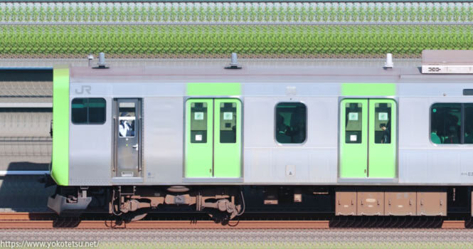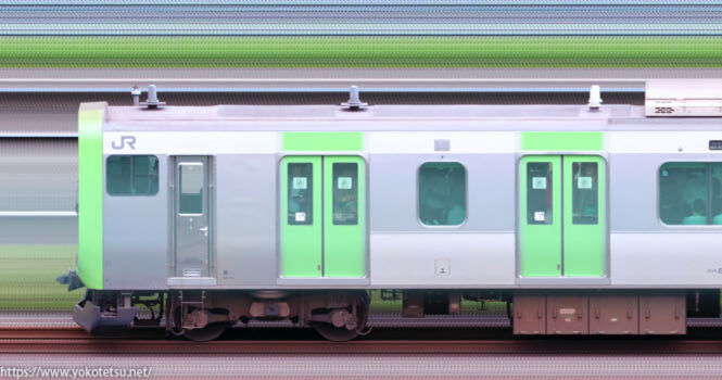 山手線の主力車両である、東京総合車両センターE235系25編成山側の長編成サイドビューです。