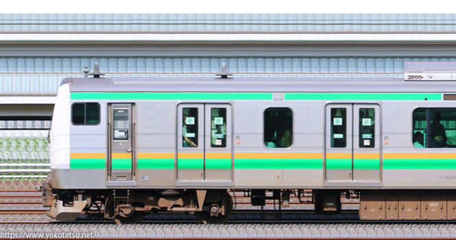 小山車両センターに所属するE231系の機器更新車U526編成の山側長編成サイドビューです。