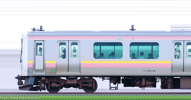 京浜東北線の主力車両である、さいたま車両センターE233系S109編成(サイ109編成)山側の長編成サイドビューです。