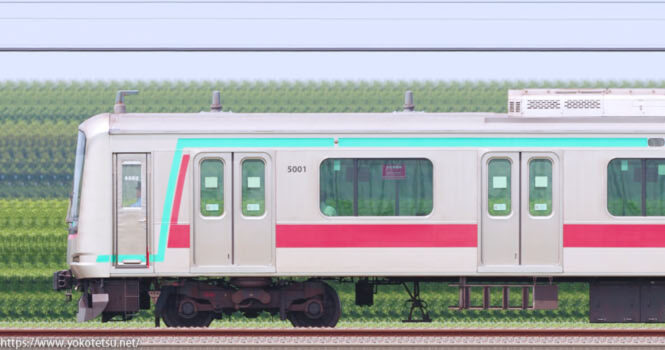 東急電鉄における標準車両と位置付けられた5000系の5110F編成山側の長編成サイドビューです。