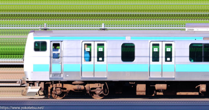 京浜東北線の主力車両である、さいたま車両センターE233系S180編成(サイ180編成)山側の長編成サイドビューです。