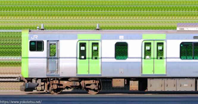 山手線の主力車両である、東京総合車両センターE235系11編成海側の長編成サイドビューです。