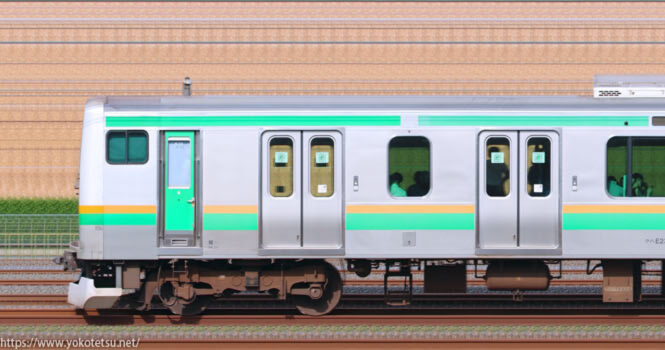 老朽化した211系の置き換えに増備された、小山車両センターE233系U233編成+U622編成山側の長編成サイドビューです。